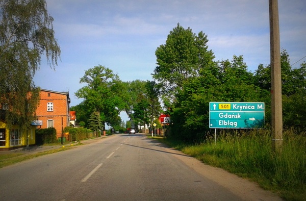 - w Mikoszewie za przejazdem kolejowy na rozjeździe skręcamy w prawo na trasę 501